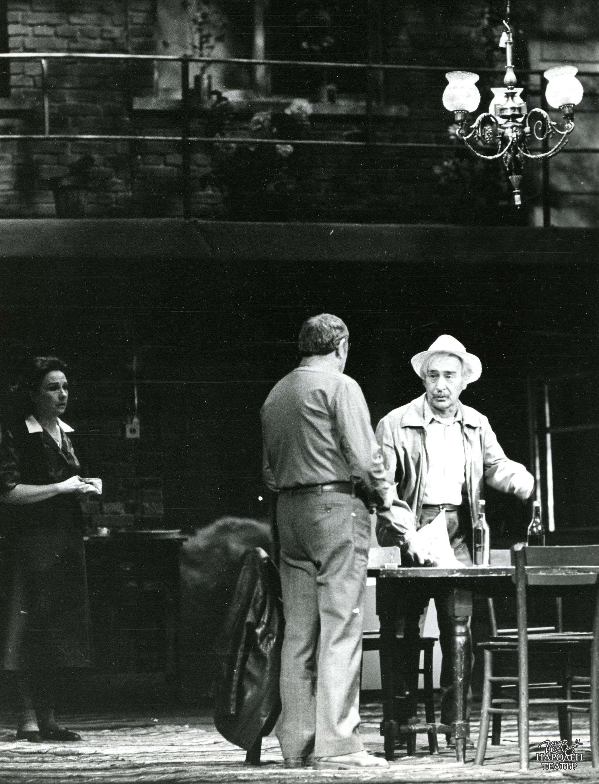 | Забележка: | През 1986/1987: Йордан - Георги Пенев. Постановката се посвещава на XIII конгрес на БКП. Дебют на Жана Караиванова. |
